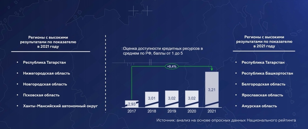 Национальный рейтинг оценивает усилия органов власти всех уровней по формированию комфортной среды для бизнеса. Включает четыре направления оценки: регуляторная среда (процедуры для бизнеса), институты для бизнеса, инфраструктура и ресурсы, поддержка малого предпринимательства.