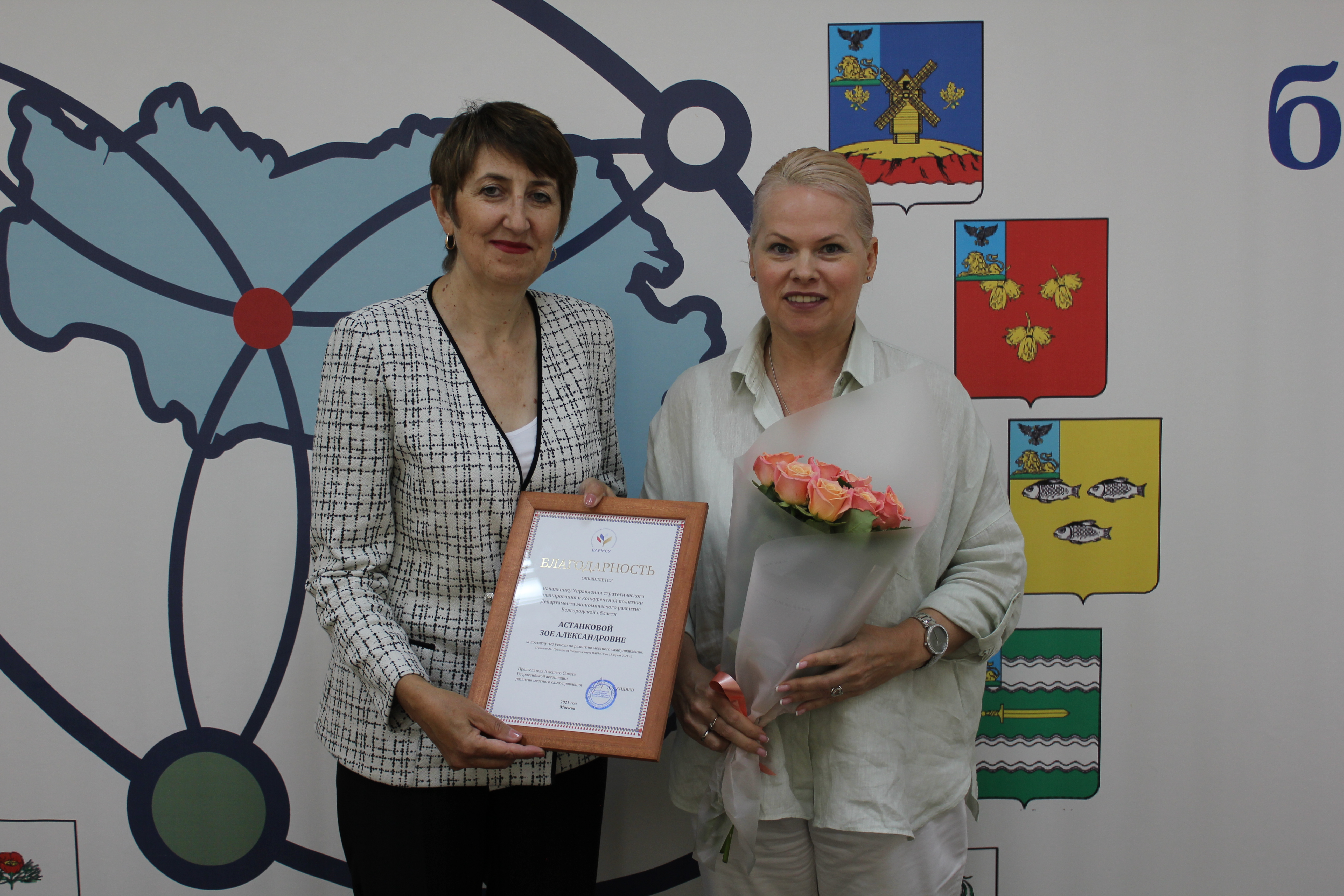 За достигнутые успехи по развитию местного самоуправления исполнительным директором Ассоциации Бочаровой Т.А. вручена Астанковой З.А. Благодарность Высшего Совета Всероссийской ассоциации развития местного самоуправления.