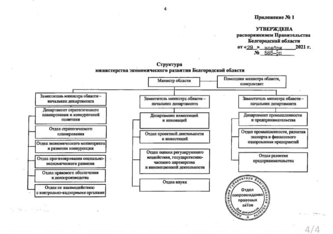 В соответствии с распоряжением Губернатора, в целях совершенствования системы органов исполнительной власти, утверждена новая схема регионального государственного управления Белгородской области. Возглавил министерство экономического развития и промышленности Белгородской области Евгений Хромов.